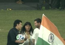 ময়দান আপডেট: কলকাতায় আয়োজন করাই সম্ভব হয় নি মেসি শো। শনিবার সন্ধ্যায় হায়দরাবাদ মেতেছিল জমজমাট মেসি শো ঘিরে। কংগ্রেসের যুবরাজ তথা সাংসদ রাহুল গান্ধীর উপস্থিতিতে স্টেডিয়ামে ছোট-ছোট ফুটবলারদের সঙ্গে হাসি-খুশি মেজাজে বলে শট মারতে দেখা যায় মেসিকে। আর রবিবার বানিজ্য নগরী মুম্বইয়ের ওয়াংখেড়েতেও চাঁদেরহাট। এদিন সন্ধ্যায় উপস্থিত লিওনেল মেসির সঙ্গে ক্রিকেটের ঈশ্বর তথা মুম্বই কিং শচীন … Continue reading ওয়াংখেড়েতে ক্রিকেট-ফুটবলের মেলবন্ধন! মেসির সঙ্গে যুগলবন্দি শচীন-ছেত্রীর