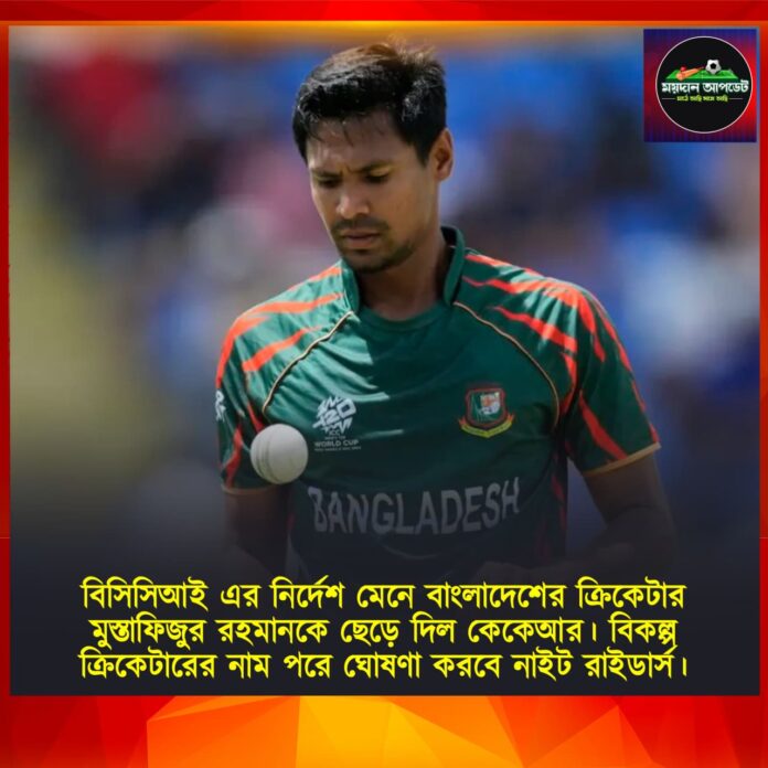 ময়দান আপডেট: বিসিসিআই এর নির্দেশ মেনে অবশেষে চাপের মুখে পড়ে বাংলাদেশের ক্রিকেটার মুস্তাফিজুর রহমানকে ছেড়ে দিল কেকেআর। বিকল্প ক্রিকেটারের নাম পরে ঘোষণা করবে নাইট রাইডার্স। দেশের নাগরিকদের ভাবাবেগের কথা ভেবে কড়া পদক্ষেপ গ্রহণ করল ভারতীয় ক্রিকেট বোর্ড। কলকাতা নাইট রাইডার্স থেকে বাদ দিতেই হবে মুস্তাফিজুর রহমানকে। কেকেআর-কে স্পষ্ট বার্তা দেন ভারতীয় ক্রিকেট বোর্ডের সচিব দেবজিৎ শইকীয়া। সাম্প্রতিক ঘটনার পরিপ্রেক্ষিতে নিজেদের অবস্থান স্পষ্ট করে জানিয়ে দেয় বিসিসিআই। বদলে অন্য কোনও প্লেয়ারকে চাইলে তারা নিতে পারে কেকেআর। আর বোর্ডের সিদ্ধান্তেই সিলমোহর দিয়ে বাংলাদেশের পেসারকে ছেড়ে দিল নাইটরা।