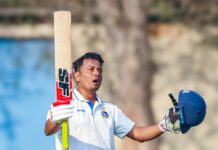 ময়দান আপডেট: প্রত্যাশিত ভাবেই বৃহস্পতিবার থেকে কল্যাণীতে শুরু হওয়া রঞ্জির ট্রফির হোম ম্যাচে সার্ভিসেসের বিরুদ্ধে প্রথম দিনের শেষে চালকের আসনে বাংলা। উল্লেখ্য দলের অভিজ্ঞ ক্রিকেটার অনুষ্টুপ মজুমদারের ঘরোয়া ক্রিকেটে এদিন শততম ম্যাচে খেলতে নামেন। ফলে ম্যাচের আগের দিনেই তাঁকে বিশেষ সম্মান জানান হয় বাংলার দলের পক্ষ থেকে। এদিন টস জিতে বাংলার বিরুদ্ধে ফিল্ডিং করার সিদ্ধান্ত … Continue reading সুদীপের ১৪০ রানে চালকের আসনে বাংলা, অভিমন্যু ৮১