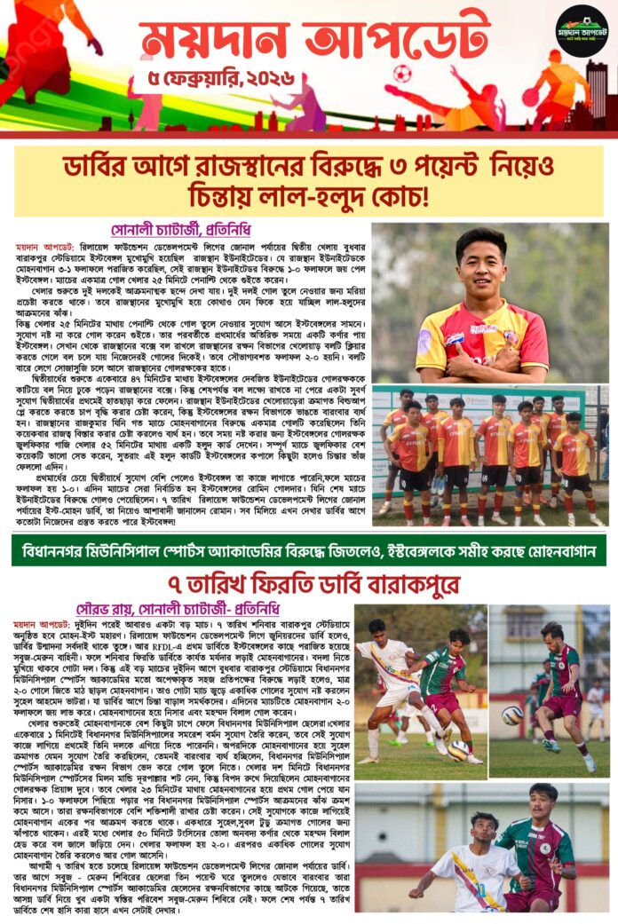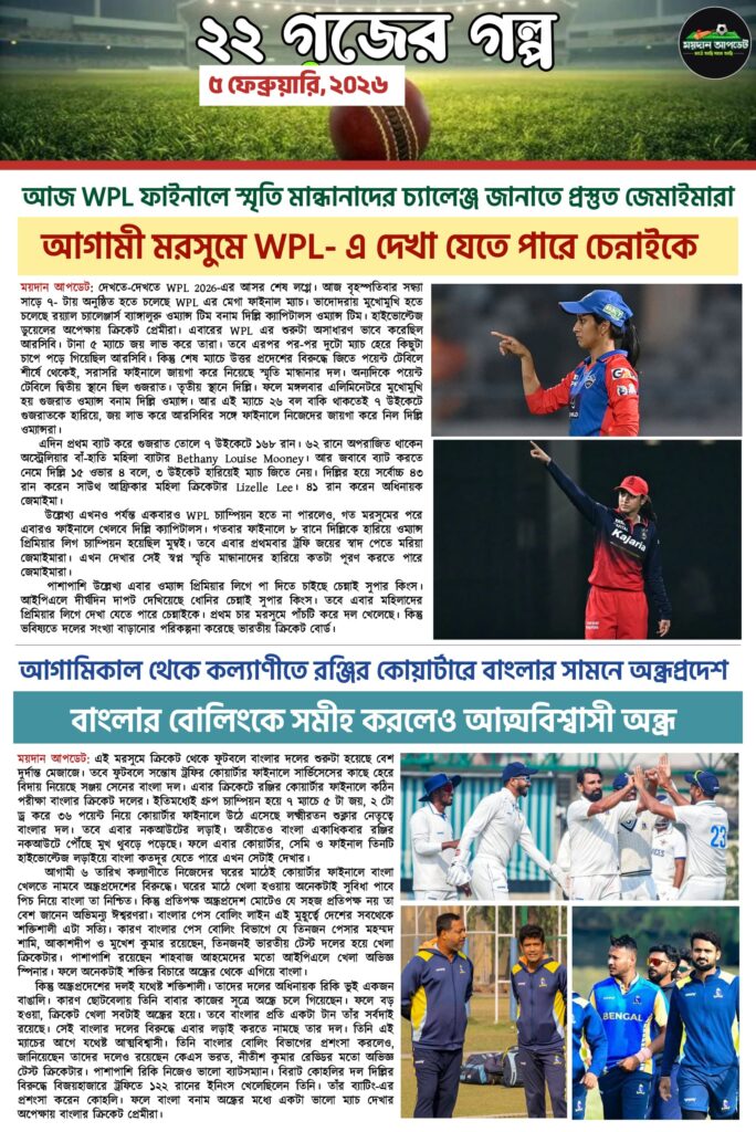 Homeই-পেপারআজকের সারাদিনের বাছাই করা গুরুত্বপূর্ণ খেলার খবর নিয়ে ময়দান আপডেট E-Paper SPORTS NEWSই-পেপার আজকের সারাদিনের বাছাই করা গুরুত্বপূর্ণ খেলার খবর নিয়ে ময়দান আপডেট E-Paper বাছাই করা গুরুত্বপূর্ণ খেলার খবর নিয়ে ময়দান আপডেট E-Paper By Sourav Roy February 5, 2026 0 93 Share FacebookTwitterWhatsAppCopy URL Tags#maidanupdate Share FacebookTwitterWhatsAppCopy URL Previous articleবিশ্বকাপের আগে প্রস্তুতি ম্যাচে প্রোটিয়াদের ধরাশায়ী করে জয়ী ভারতNext articleসমর্থকদের প্রত্যাশার চাপ উপভোগ করেন লোবেরা! আক্রমণাত্বক ফুটবলই এবার মোহনবাগানের রণনীতি Sourav Royhttps://maidanupdate.com RELATED ARTICLES ক্রিকেট জেকব বেথেলের দুর্দান্ত সেঞ্চুরি! ইংল্যান্ডের অনবদ্য লড়াইয়ের পরেও,৭ রানে জিতে চতুর্থবারের জন্য টি-২০ বিশ্বকাপের ফাইনালে ভারত March 5, 2026 ফুটবল অতিরিক্ত ডিফেন্সে ভরা ফুটবল! গোলশূন্য ড্র ইস্টবেঙ্গল বনাম এফসি গোয়া ম্যাচ March 5, 2026 ফুটবল প্রথমার্ধে একাধিক গোলের সুযোগ নষ্ট দুই দলেরই, গোলশূন্য ইস্টবেঙ্গল-গোয়ার প্রথমার্ধ March 5, 2026 LEAVE A REPLY Cancel reply Comment: Please enter your comment! Name:* Please enter your name here Email:* You have entered an incorrect email address! Please enter your email address here Website: Save my name, email, and website in this browser for the next time I comment. Most Popular জেকব বেথেলের দুর্দান্ত সেঞ্চুরি! ইংল্যান্ডের অনবদ্য লড়াইয়ের পরেও,৭ রানে জিতে চতুর্থবারের জন্য টি-২০ বিশ্বকাপের ফাইনালে ভারত March 5, 2026 অতিরিক্ত ডিফেন্সে ভরা ফুটবল! গোলশূন্য ড্র ইস্টবেঙ্গল বনাম এফসি গোয়া ম্যাচ March 5, 2026 প্রথমার্ধে একাধিক গোলের সুযোগ নষ্ট দুই দলেরই, গোলশূন্য ইস্টবেঙ্গল-গোয়ার প্রথমার্ধ March 5, 2026 জাতীয় ডেফ ক্রীড়া প্রতিযোগিতায় জলপাইগুড়ির কৃতী খেলোয়াড়দের সামনে বড় চ্যালেঞ্জ March 4, 2026 Load more