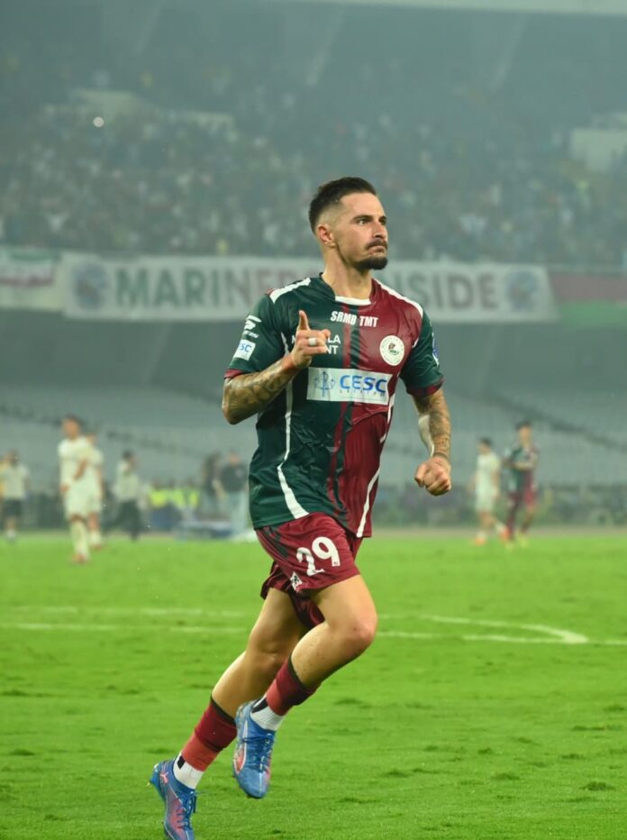 আর খেলার ৬৬ মিনিটে শুভাশিসের বাড়ানো বলে, গোল করে মোহনবাগানকে আরও এগিয়ে দেন মোহন জনতার নয়ণের মণি সেই দিমিত্রি পেত্রাতোস। খেলার ফলাফল হয়ে যায় ২-০। ফলে দিমির এই গোল মনে করিয়ে দিল ২০২৫ সালের ঠিক এক বছর আগে আজকের দিনের কথা অর্থাৎ ২৩ ফেব্রুয়ারি, ২০২৫। সেই দিন আইএসএলে সার্জিও লোবেরার দল ওড়িশা এফসির বিরুদ্ধে গোল করে মোহনবাগানকে জয় উপহার দেওয়ার পাশাপাশি শিল্ড চ্যাম্পিয়ন নিশ্চিত করেন দিমিত্রি পেত্রাতোস। আর ঠিক এক বছর পর আবারও সেই ২৩ ফেব্রুয়ারি, ২০২৬ সালে মোহনবাগানের জার্সিতেই সমর্থকদের গোল উপহার দিলেন দিমি। তবে এবার প্রতিপক্ষ দলের কোচ নয়, মোহনবাগানের হেড কোচের পদেই সার্জিও লোবেরা।
