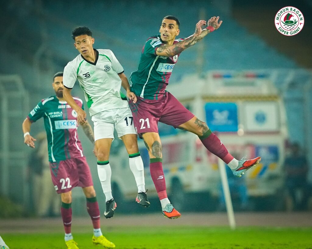 ময়দান আপডেট: কেরালা ও চেন্নাইয়ের বিরুদ্ধে পর-পর দুই ম্যাচে জিতে ৬ পয়েন্ট নিয়ে, লিগ টেবিলে চতুর্থ স্থানে থেকে শনিবার যুবভারতীতে ঘরের মাঠে বাংলার আরেক প্রধান মহামেডান স্পোর্টিংয়ের বিরুদ্ধে খেলতে নামে মোহনবাগান সুপার জায়েন্টস। অপরদিকে জামশেদপুর ও এফসি গোয়ার কাছে হেরে খেলতে নামে মহামেডান স্পোর্টিং। এদিন শনিবার ম্যাচ হলেও সেভাবে দর্শকদের উপস্থিতি ছিল না দুই দলেরই। এদিন দলে কয়েকটি পরিবর্তন করেন কোচ সার্জিও লোবেরা। ম্যাকলারেন-দিমির জায়গায় এদিন শুরু করেন ম্যাকলারেন-কামিংস। লিস্টনের জায়গায় শুরু করেন মনবীর। আর শুরু থেকেই আক্রমণের ঝড় তুলতে থাকে মোহনবাগান। শুরুতেই মহামেডানের পোস্ট লক্ষ্য করে গোলের প্রচেষ্টা করেন জেসন কামিংস, যদিও কার্যকরি হয়নি। এরপর ৫ মিনিটে রবসনকে ফাউল করে মহামেডান, ফলে দূরপাল্লার শট নেন আপুইয়া যদিও গোল রুখে দেন মহামেডানের গোলরক্ষক শুভজিৎ ভট্টাচার্য। তবে খেলার গতির বিপক্ষে গিয়ে ১২ মিনিটে মহামেডানের সাকার কর্ণারে গোল করে মহামেডান স্পোর্টিংকে এগিয়ে দেন লালথানকিমা। খেলার ফলাফল হয়ে যায় ১-০।উল্লেখ্য চলতি আইএসএলে নিজেদের প্রথম গোল করল মহামেডান। অপরদিকে তিন ম্যাচে প্রথম গোল খেল মোহনবাগান।