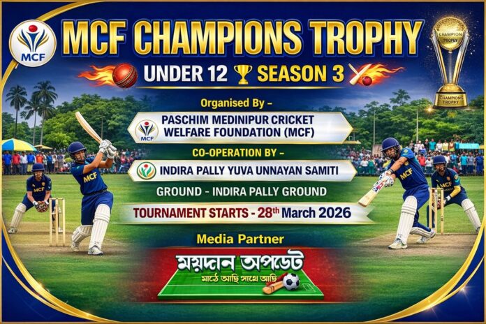 ময়দান আপডেট: জনপ্রিয় ক্রিকেট কোচ সুশীল শিকারিয়ার উদ্যোগে মেদিনীপুর শহরে অন্যতম সেরা ক্রিকেট প্রশিক্ষণ কেন্দ্র হিসাবে পরিচিত পশ্চিম মেদিনীপুর ক্রিকেট ওয়েলফেয়ার ফাউন্ডেশন। আর এই প্রশিক্ষণ কেন্দ্রের উদ্যোগেই আয়োজিত হয় অনুর্ধ্ব ১২ MCF CHAMPIONS TROPHY। এবার এই টুর্নামেন্টের তৃতীয়বর্ষ অনুষ্ঠিত হচ্ছে মেদিনীপুর শহরের ইন্দিরাপল্লি গ্রাউন্ডে। এই টুর্নামেন্টে বিশেষ সহযোগিতা করছে ইন্দিরাপল্লি যুব উন্নয়ন সমিতি। এই টুর্নামেন্টে অংশ নিতে চলেছে মেদিনীপুর, খড়গপুর, দিঘা, কলকাতা, বারাসত, তারকেশ্বর, খাতরা সহ বিভিন্ন এলাকা থেকে ১৮ টা দল। এই টুর্নামেন্টে রয়েছে বেশ কিছু আকর্ষণীয় পুরস্কার। এছাড়াও থাকছে প্রথম পুরস্কার সাত হাজার টাকা ও দ্বিতীয় পুরস্কার ৫ হাজার টাকা। এছাড়াও জার্সি, মেডেল সহ আকর্ষণীয় ট্রফি।