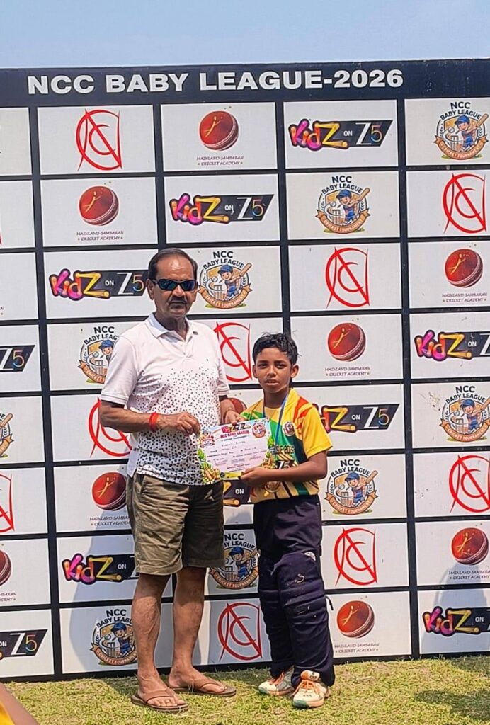 ময়দান আপডেট: এনসিসি বেবি লিগ ক্রিকেট টুর্নামেন্টের দ্বিতীয় দিনেও একাধিক ম্যাচে টান-টান উত্তেজনাপূর্ণ লড়াই ছোট-ছোট খুদে ক্রিকেটারদের। বৃহস্পতিবারও রাজস্থান মাঠে চারটি এবং সম্বরণ মাঠে ৩ টি ক্রিকেট ম্যাচ অনুষ্ঠিত হয়। এদিন সকালে সম্বরণ ক্রিকেট অ্যাকাডেমির মাঠে প্রথম ম্যাচেই ৮ উইকেটে বেঙ্গল বয়েজকে হারিয়ে জয় লাভ করে পাটুলি ক্রিকেট অ্যাকাডেমি। ৩২ বলে ৪৯ রানে অপরাজিত থেকে ম্যাচের সেরা হয় অভ্রজিৎ বিশ্বাস। তাঁর ইনিংসে ছিল ৫ টা চার ও ২ টি ছয়। উল্লেখ্য পর-পর দুই ম্যাচে জিতে নকআউটে জায়গা করে নিল পাটুলি ক্রিকেট অ্যাকাডেমি। আর দুই ম্যাচেই পাটুলি ক্রিকেট অ্যাকাডেমির হয়ে ম্যাচের সেরা অভ্রজিৎ বিশ্বাস। বুধবার Sportiqo এর বিরুদ্ধে ৩৯ বলে ৯৩ রানের অপরাজিত থাকেন তিনি। আর বৃহস্পতিবারও দুর্দান্ত ব্যাট করে দলের জয় এনে দিল অভ্রজিৎ।