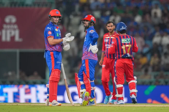 আর জবাবে ব্যাট করতে নেমে লো-স্কোরিং টার্গেট হলেও, তাসের ঘরের মতো ব্যাটিং বিপর্যয়ের মুখে পড়ে দিল্লি। শুরুতেই মহম্মদ শামির বলে ১ বলে ০ রানে ফিরে যেতে হয় কেএল রাহুলকে। এরপর নীতীশ রানাকে ১৫ রানে আউট করে দেন মহসিন খান। পরের ওভারেই অর্থাৎ ম্যাচের পঞ্চম ওভারে প্রিন্স যাদব পর-পর দুই বলে দুটি উইকেট তুলে নেন। পাথুম নিশাঙ্কাকে ৫ বলে ১ রান এবং দিল্লির অধিনায়ক অক্ষর প্যাটেলকে ১ বলে ০ বোল্ড করে দেন পিন্স। ফলে কার্যত চাপে পড়ে যায় দিল্লি। কিন্তু দিল্লিকে চাপ মুক্ত করেন উত্তর প্রদেশের ২২ বছর বয়সি ডানহাতি ব্যাটার সমীর রিজভি ও ট্রিসটান স্ট্রাবস। তাদের দুইজনের যুগলবন্দিতে জয়ের লক্ষ্যে এগিয়ে যায় দিল্লি।