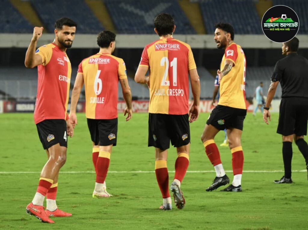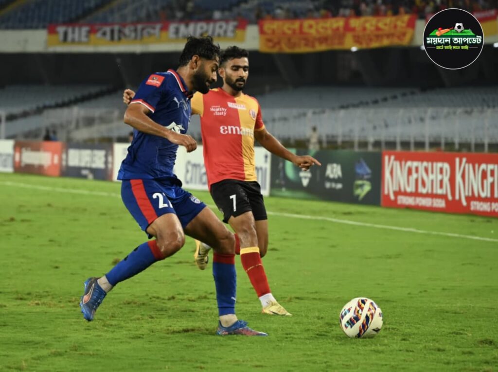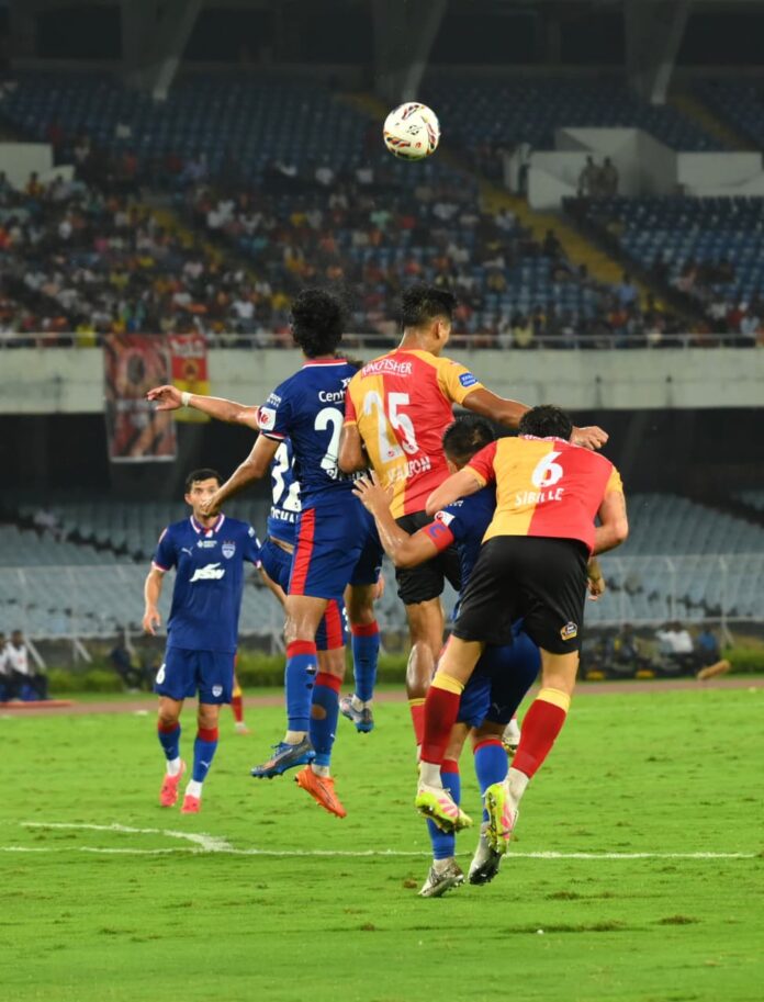 ৬৭ একসঙ্গে তিনটি পরিবর্তন করে ইস্টবেঙ্গল। মাঠে নামেন ইউসুফ হিজ্জেজারির জায়গায় নামেন অ্যান্টন সোজবার্গ, আনোয়ারের জায়গায় রাকিপ এবং এডমুন্ডের জায়গায় নন্দাকুমার শেখর। চোট পেয়ে স্ট্রেচারে করে মাঠ ছাড়েন আনোয়ার আলি। এরপর ৭১ মিনিটে রায়ান উইলিয়ামসের শট প্রতিহত করতে ব্যর্থ হন প্রভসুখন গিল। বল সরাসরি চলে যায় পোস্টের ভিতরে। ফলে ৩-২ গোলে এগিয়ে যায় ব্যাঙ্গালুরু এফসি। ৯০ মিনিটে জোড়া পরিবর্তন ইস্টবেঙ্গলের। শৌভিকের জায়গায় মাঠে আসেন ডেভিড ও জিকসনের জায়গায় জয় গুপ্তা। তবে খেলার ৯৬ মিনিটে বিপিনের বাড়ানো বলে, ইস্টবেঙ্গল জার্সিতে প্রথম গোল করে ইস্টবেঙ্গলকে আবারও সমতায় ফেরালেন অ্যান্টন সোজবার্গ। খেলার ফলাফল হয়ে যায় ৩-৩। ৩-৩ গোলে ড্র হল ম্যাচ। ৮ ম্যাচে ১৫ পয়েন্ট নিয়ে তিন নম্বরে উঠে এল ইস্টবেঙ্গল। ব্যাঙ্গালুরু ১৫ পয়েন্ট নিয়ে রইল চার নম্বরে।